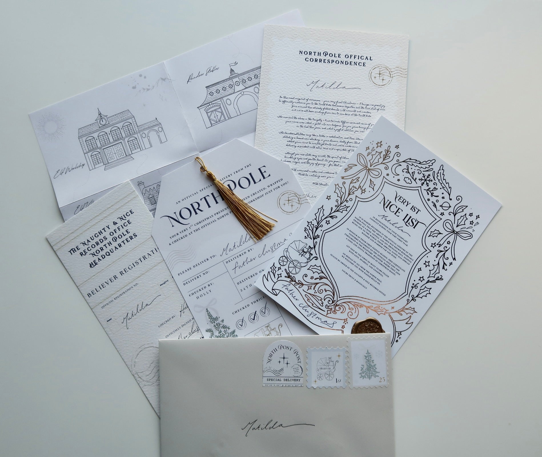 This beautifully curated set includes Our Very First Nice List, elegantly gold-foiled and adorned with a hand-drawn vintage pram — a gentle nod to old-world charm. The certificate celebrates their official entry onto the Nice List and enrolment into the Believers’ Register, a moment to be cherished for years to come.